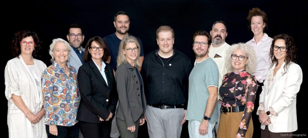 De gauche à droite : Chantal Cimon, présidente du DÉPS, Sylvie Pouliot, directrice générale de la SADC Pierre-De Saurel, Mario Ledoux, directeur adjoint aux programmes, Diane Dumas, directrice générale et des affaires corporatives, Jean-Philippe Sicard, co-fondateur de Ton Équipier, Catherine Boulanger, directrice des études, Jean-Philippe Hébert, coordonnateur du HUB, Philippe Petit, responsable du Club de relève entrepreneuriale Sorel-Tracy, Sébastien Bibeau, co-fondateur de Ton Équipier, Claude-Maheux Picard, présidente de la SADC Pierre-De Saurel, Mélanie Dulong, conseillère stratégique en développement d’entreprise, Catherine Durand, conseillère en finances personnelles, attitrée à la clientèle jeunesse, à la Caisse Desjardins Pierre-De Saurel.
