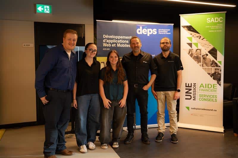 Le professeur en T.I. Richard Farley et le professeur Michaël Cournoyer en Techniques d’administration et de gestion (T.A.G.) ainsi que le coach-expert du Parcours Startup Sébastien Bibeau de Ton Équipier devaient préalablement sélectionner à l’aide de critères exigeants, les 5 équipes qui ont réussi à tirer leur épingle du jeu.